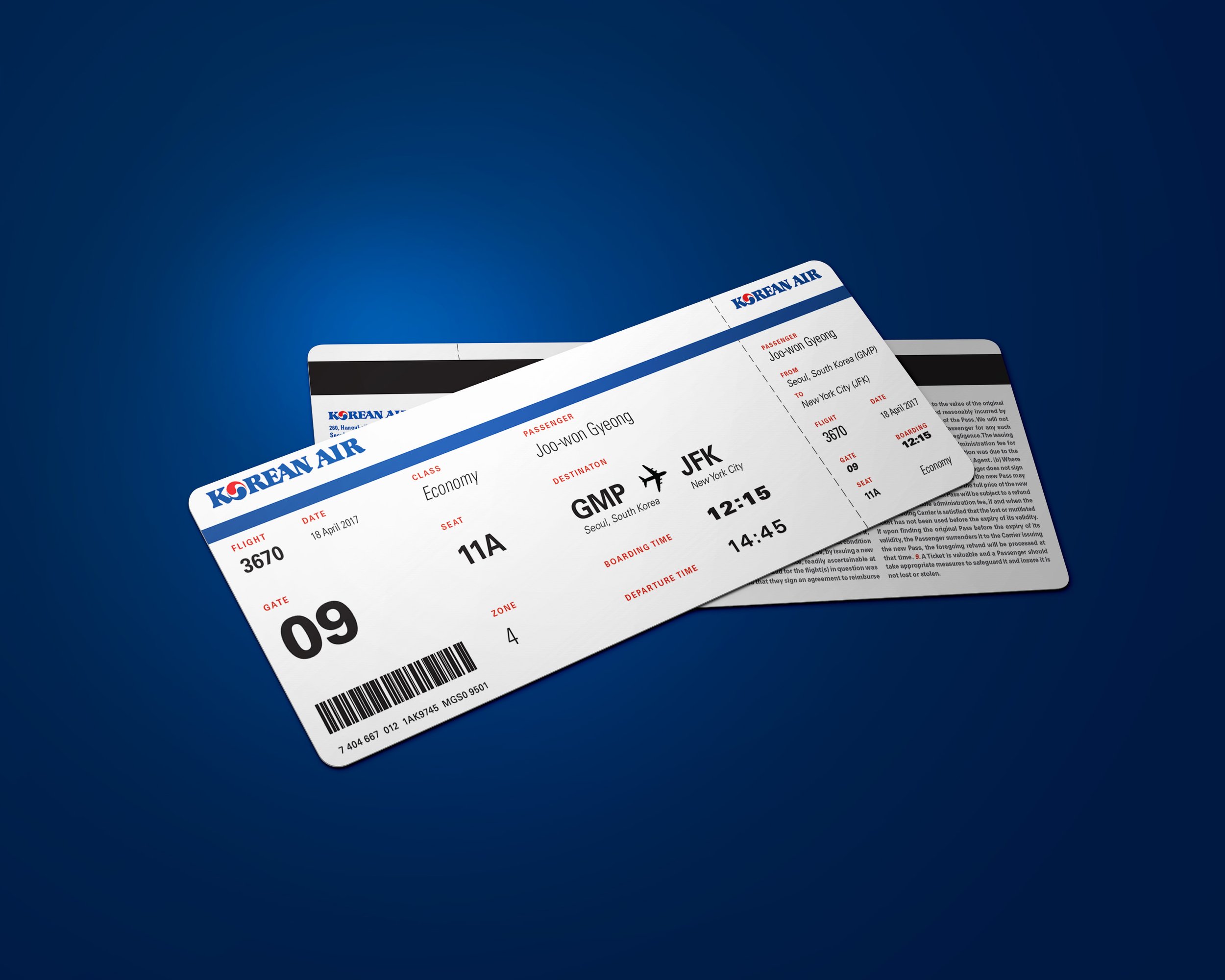 This conceptual project reimagines Korean Air’s mobile check-in flow and boarding pass design. The work focuses on consistency, legibility, and seamless transitions between digital and physical travel materials.